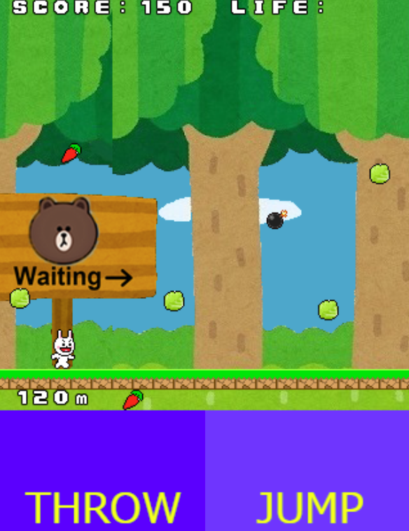 いろんな動物が冒険するゲームです。森や空や海などを、フルーツを食べ敵と戦いながら進んでいきます。